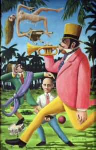 Art by Bob Steeler – “The Discovery of Music by Diplomats in Southern France” Acrylic on canvas