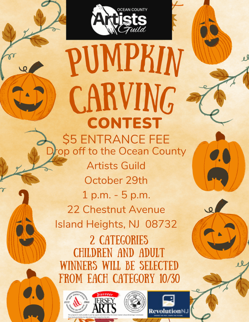 Drop off your Jack-o’-lantern October 29th from 1–5 PM at the Guild, 22 Chestnut Avenue, Island Heights.