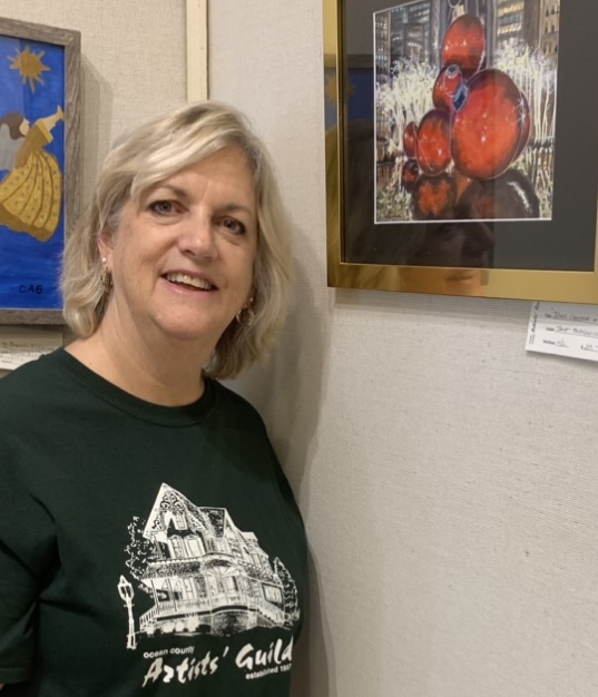 At OCAG, Janet quickly became an integral part of the community. Every Thursday, she joins the Do Your Own Thing (DYOT) group to create and connect with fellow artists. Since January 2023, she has served as Gallery Committee Chairman, leading exhibitions, organizing receptions, and supporting the Guild’s vibrant calendar of shows. She has also served on the Board of Trustees and has coordinated exhibitions at local libraries, coffeehouses, distilleries, and community spaces across Ocean County.